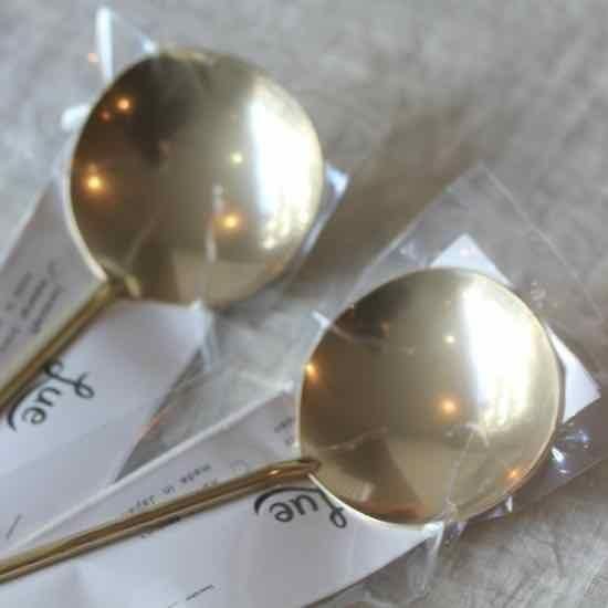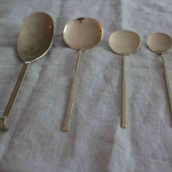 デザインはシンプルですが、手仕事ならではのディテールが個性として現れています。使ううちに色合いや質感が変化してゆくのも真鍮素材の魅力。愛着を持って使い続けられるカトラリーです。のため、経年変化の見られるお品です。その辺りも楽しんで是非使い込んでいただきたいです。