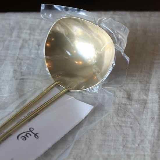 デザインはシンプルですが、手仕事ならではのディテールが個性として現れています。使ううちに色合いや質感が変化してゆくのも真鍮素材の魅力。愛着を持って使い続けられるカトラリーです。のため、経年変化の見られるお品です。その辺りも楽しんで是非使い込んでいただきたいです。