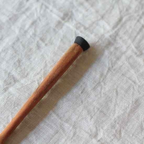 茨城県水戸市で木を削る安彦年朗さん。